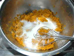 南瓜クリームの南瓜は、正味で計るので、南瓜自体は400gくらい必要になります。
