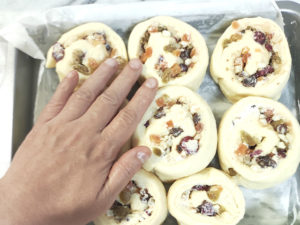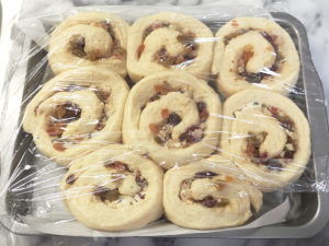 ![]() 15:ラップをかけたら、30度のオーブンに60分ほど入れ、二次発酵させます。 |