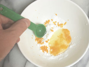 ![]() 22:容器に粉砂糖とオレンジの皮のすりおろし、水を少量加えて、ぽたぽたと落ちるくらいまで混ぜ、アイシングを作りましょう。 23:ジャムの上から、たっぷりとオレンジアイシングを塗ります。 |