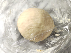 ![]() 4:パン生地をボールに戻し入れ、ラップをして、30度のオーブンで1時間発酵させます。 |
