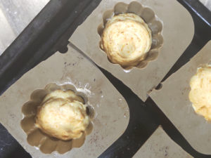 180度のオーブンで25分焼き、焼けたら、型に入れたままで粗熱を取ります。