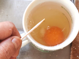 温泉卵は、卵黄に穴を開けないと破裂するので注意してください。