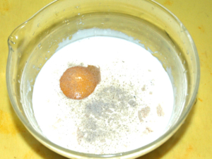 ![]() ③ボールに、卵、牛乳、ウェイパーを加えて、良く混ぜましょう。 |