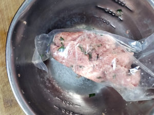 ひき肉を絞る時に、袋に肉を入れすぎると、絞るのが大変になるので、少し少な目に入れて、その都度足すようにしてください。