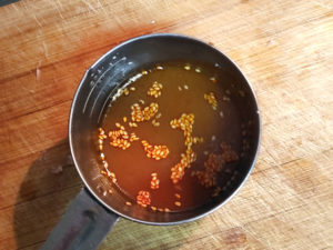 ![]() 7:容器に、りんご酢、めんつゆ、ラー油、水、片栗粉、ごまを入れてよく混ぜて調味料を作ります。 8:竹輪を取り出したフライパンに、調味料を加え、再び火を加えて、軽くとろみがつけばOK。 |