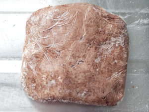 ![]() 6:平たい長方形にまとめたら、ラップをして、冷蔵庫で2時間以上冷やします。 |