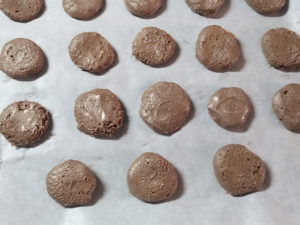 生地が柔らかいので、手の上で丸めた後に、平たくつぶすのが良いかなと思います。