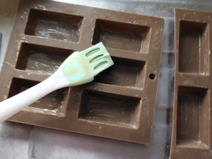 ![]() 13:しっかりと冷めたフィナンシェに、シロップを1つずつ刷毛で塗り、味がなじむまで5分ほど冷蔵庫に入れます。 |