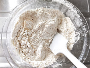 ![]() 4:タルト生地の薄力粉をふるって加え、ゴムベラに持ち替えてさっくりと混ぜましょう。 |
