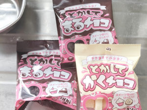![]() 15:今回は、100均ダイソーの「とかしてまるチョコ」と「とかしてかくチョコ」を使いました。 |