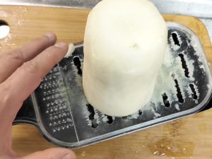 ![]() 3:大根は皮をむき、おろし金ですりおろしておきます。 |