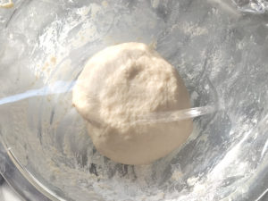 ![]() 5:ボールに生地を戻し入れ、ラップをかけて、40度のオーブンで1時間~1時間半発酵させます。 |