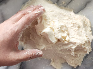 生地が水分が多くべたつくので、適度に打ち粉をしながらすると、生地も捏ねやすいと思います。