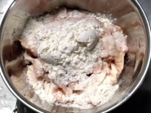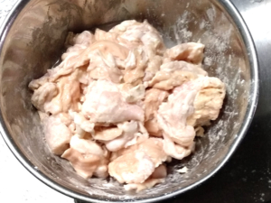 ![]() ①牛モツと薄力粉をボールに入れ、手で良く揉みこみます。 ②水を100cc(分量外)ずつ入れ、三度ほど揉みこむのを繰り返しましょう。 |