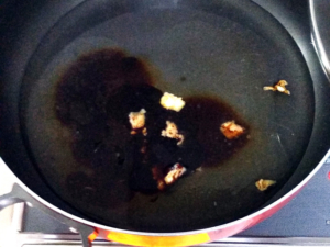 ![]() ④今回は、ラーメン用の醤油豚骨スープを使いました。 |