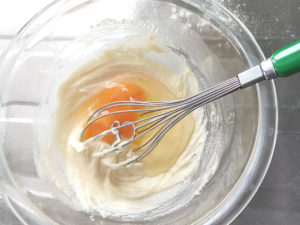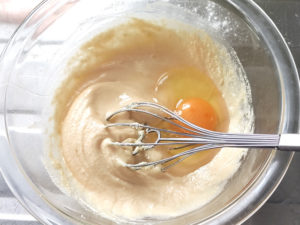 ![]() 5:残りの卵も加え、生地が滑らかになるまでよく混ぜます。 |