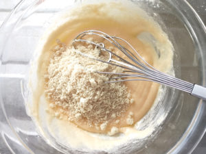 ![]() 4:アーモンドパウダーを加え、さっと混ぜ合わせましょう。 |