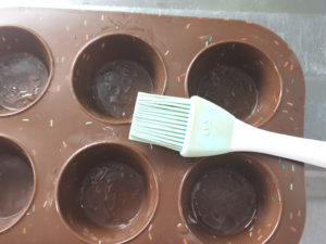 マフィン型はシリコン製なので、油を塗るだけでOKです。