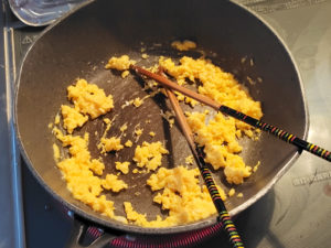 ![]() 2:卵と卵用砂糖は別のボールに入れて良く溶きほぐし、フライパンでほぐしながら焼き、卵そぼろを作りましょう。 3:終わったら取り置き、フライパンを綺麗にしておきます。 |