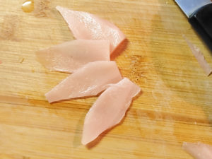 ![]() 9:生姜の甘酢漬けは、花びらになるように、ハサミなどでカットして整形しておきます。 |
