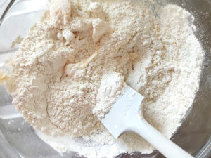![]() 4:薄力粉と強力粉を加え、ゴムベラで切るように混ぜましょう。 |