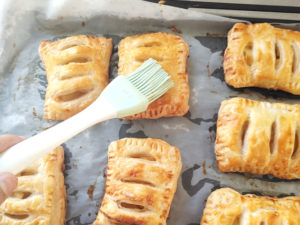 ベイクオフのペイストリー生地を参照して、セイボリー系ではなくスイーツ系のアップルパイにしてみました。焼きたてサクサクで、生地からはバターが香ります!^^
