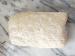 ![]() 7:下の1/3の生地を上に折り返し、長方形のブロックにしましょう。 8:再度、長方形に伸ばし、同じように2度折りたたんで長方形にしたら、ラップに包み、冷蔵庫で30分以上冷やします。 |
