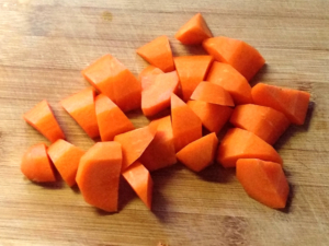 ①人参は皮をむき、ちょっと大きめの乱切りにします。