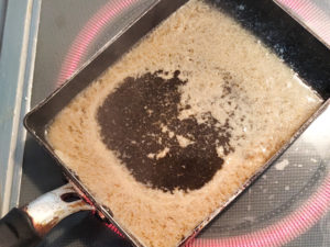 ![]() 5:焼いている間に、漬け汁をフライパンにあけ、軽く煮詰めてソースを作っておきます。 |