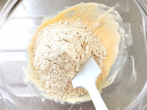 ![]() 4:ボールにおからパウダーを加えて、ざっと混ぜましょう。 |