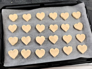 ![]() 8:生地を好きな抜型で抜き、クッキングシートを敷いた天板の上に並べましょう。 (生地が余ったら、もう一度同じ厚みに伸ばし、またクッキー型で抜くのを繰り返します。) |