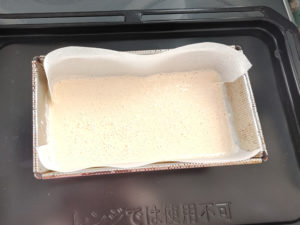 7:パウンド型にオーブンシートを敷き、生地を静かに流し入れましょう。