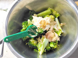 ブロッコリーは芯が固いと美味しくないので、先に長めにゆでておくと、食べやすくなると思います。