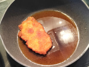 ![]() 8:別のフライパンに、砂糖、醤油、酒、水、みりんを入れて中火にかけ、調味料を溶かしましょう。 9:調味料、カツを1枚ずつ、さっと調味料に漬け込みます。 10:ご飯にかける用に、大4~6杯の調味料を残しておきましょう。 |