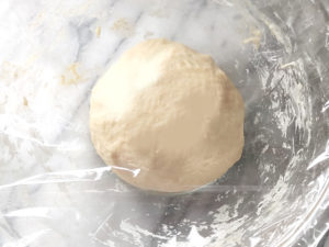 4:生地を丸くまとめたら、ボールに戻し入れて、ラップをして、40度で40分発酵させましょう。