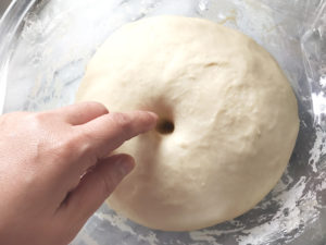 5:生地の中央に指で押してみて、跡が戻らないようなら発酵はOK。