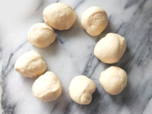 6:生地を16等分し、1つずつ手を籠のようにしてクルクルと丸めます。