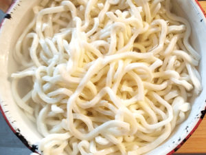 ![]() 8:うどんは袋から出し、水で軽く洗ってから、ざるにあげて水気を切ります。 |