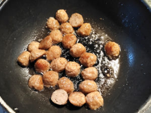 ![]() 3:フライパンに少し多めに油(分量外)を引き、肉団子に焼き色がつくまで焼きます。 |