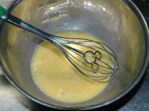 4:ボールに卵を入れて、良く溶きほぐしましょう。
