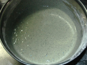 蓬の粉末はお湯で溶いてから入れると、混ざりやすくなります。