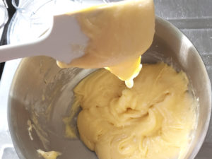 ![]() 2:カスタードの薄力粉も大1ずつ加え、その都度良く混ぜ、バニラオイルも加えて混ぜましょう。 |