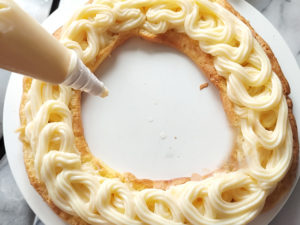 甥っ子と姪っ子が遊びに来るということで、パリブレストを作ってみました。シュー生地で一番大変な卵を入れてからの作業も、スタンドミキサーなら楽々です。^^