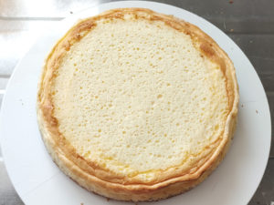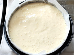![]() 17:焼けたら、すぐに型から外し、しっかりと冷まします。 18:生地が冷めたら、トップを平らに切り取りましょう。 |