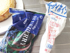 ![]() 19:今回は、業務スーパーのアマンディホイップと冷凍のブルーベリーを使いました。 |