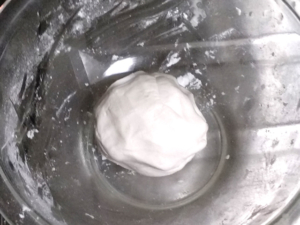 ![]() ③生地がまとまったら、ボール状に丸めます。 |