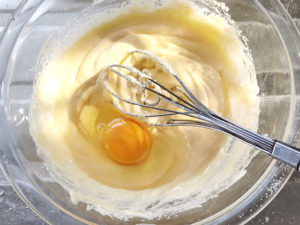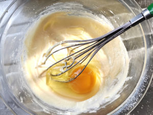 ![]() 4:残りの卵1個をボールに入れ、なじむまでよく混ぜましょう。 |