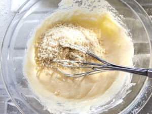 ![]() 3:アーモンドパウダーをボールに加え、ざっと混ぜます。 |