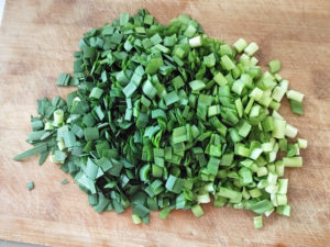 ![]() 1:にらは8mm幅くらいに細かく切ります。 |