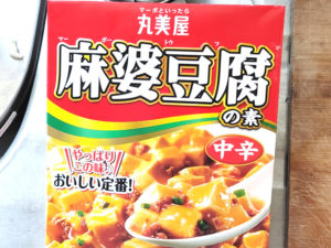 ![]() 2:今回は、丸美屋の麻婆豆腐の素を使いました。 |